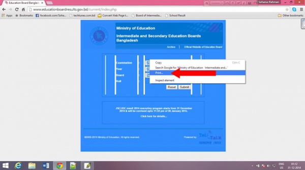 ২। সিলেক্ট করা অংশের উপর মাউস পয়েন্টার রেখে মাউসের Right Button এ ক্লিক করুন। এরপর নিচের ছবির মত Print লেখার উপর ক্লিক করুন।