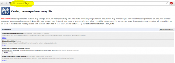 ১। শুরুতে আপনার গুগল ক্রোম ব্রাউজার চালু করে সার্চ বারে chrome://flags/ টাইপ করুন।