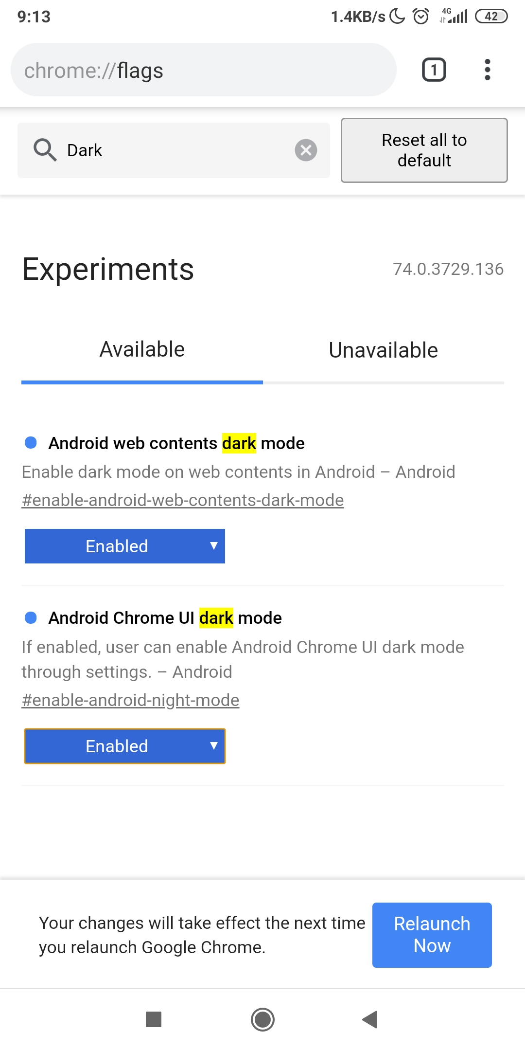 ১. অ্যান্ড্রয়েড এর ক্রোমের জন্য ডার্ক মোড এখনও পরীক্ষামূলক ফিচার হিসেবে আছে, তাই আপনি মনে রাখবেন যে কিছু ডিজাইনের এলিমেন্টস গুলি কিছুটা অদ্ভুত দেখা যেতে পারে। আপনি ডার্ক মোড একটিভ করতে চাইলে, ব্রাউজারের অ্যাড্রেস বারে chrome://flags লিখুন এবং এন্টার চাপুন।