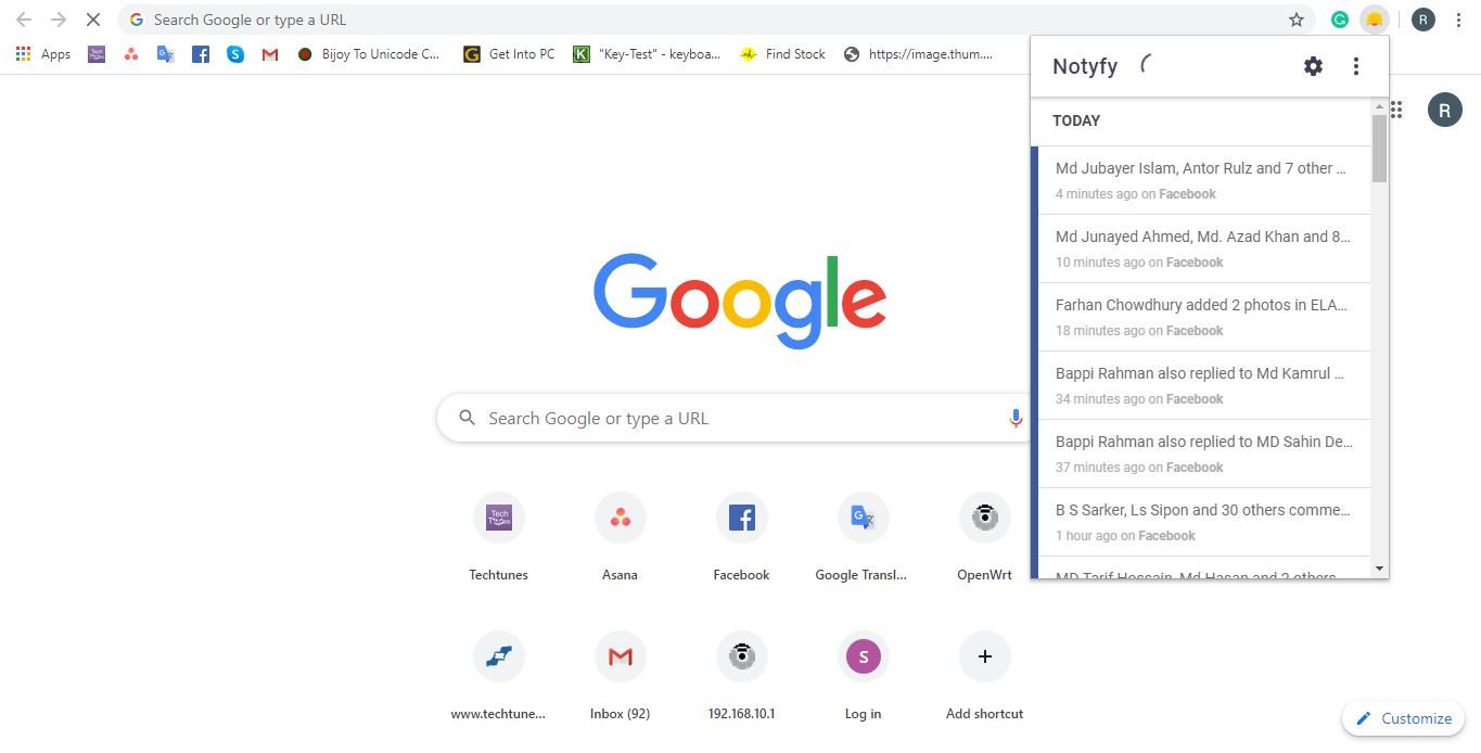 Notyfy এক্সটেনশনটি ঠিকঠাক ভাবে কাজ করছে কিনা চেক করতে অ্যাড্রেস বারের একদম ডান পাশেই Notyfy এর আইকন দেখতে পাবেন। আইকনের উপর ক্লিক করলে উপরের মত একটা ইন্টারফেস দেখতে পাবেন এবং দেখবেন যে আপনার লগইন করা সমস্ত সোশ্যাল মিডিয়ার নোটিফিকেশন গুলি অটোমেটিক্যালি কালেক্ট করে নিবে আর আপনারকে আর কষ্ট করে প্রত্যেকটি ওয়েব সাইটে ভিজিট করতে হবে না।