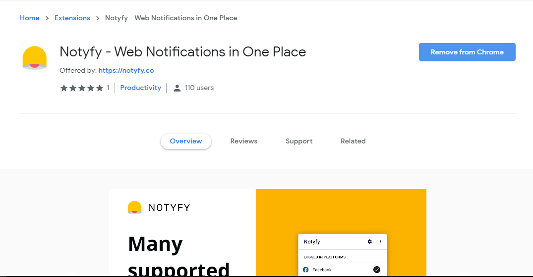 একের ভিতর সব, Notyfy এক্সটেনশনটি আপনাকে জনপ্রিয় সব সোশ্যাল মিডিয়ার নোটিফিকেশন এক জায়গায় খুঁজে পেতে সাহায্য করবে। আর এইভাবে আপনি সোশ্যাল মিডিয়ার ওয়েব পেইজে ভিজিট না করেই খুবই দ্রুত সকল নোটিফিকেশন গুলো দেখে নিতে পারেন এক পলকে। এজন্য আপনাকে ক্রোম ব্রাউজারে যে সব সোশ্যাল মিডিয়ার নোটিফিকেশন দেখতে চান সেগুলোতে লগইন করা থাকতে হবে অন্যথায় আপনি একজায়গাতে সকল সোশ্যাল মিডিয়ার নোটিফিকেশন দেখতে পারবেন না।