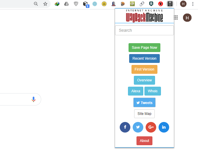 সেই বিখ্যাত Wayback Machine, গুগল ক্রোমের জন্য একটি এক্সটেনশন তৈরি করেছে যার নামও Wayback Machine। কোন ওয়েবসাইট যদি 404 error দেখায় এটি সেই ওয়েবসাইটের ব্যাক-আপ দেখাতে পারবে। পুরাতন ডাটা দেখতে এই Wayback Machine এক্সটেনশনটি চমৎকার ভাবে সাহায্য করে। বিশেষ করে কোন ওয়েবসাইটের বিতর্কিত কোন ইনফরমেশন যা ডিলিট হয়ে গেছে এমন তথ্য বের করতে দারুণ ভাবে কাজ করবে এই এক্সটেনশনটি।
