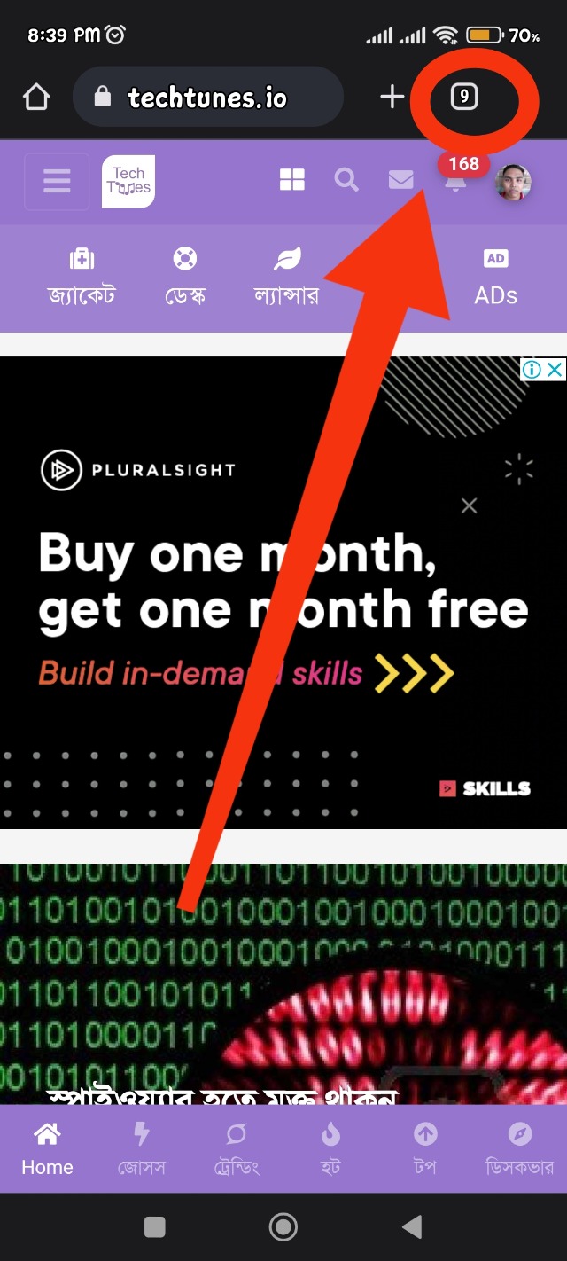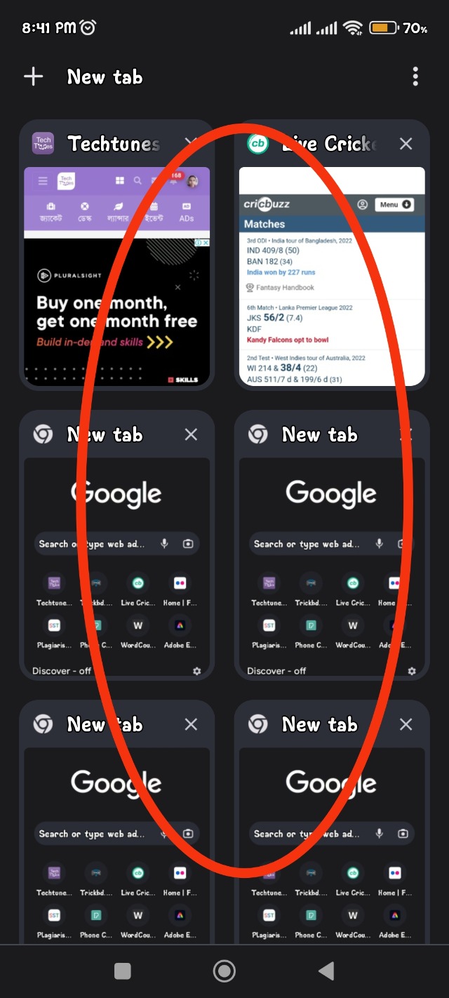 এরপর আবার যেকোনো একটি ওয়েসাইট ওপেন করুন। আবার নতুন করে অনেক গুলো ট্যাব ওপেন করুন। উপরে যেখানে ট্যাব সংখ্যা দেওয়া থাকে সেখাjনে ক্লিক করুন।