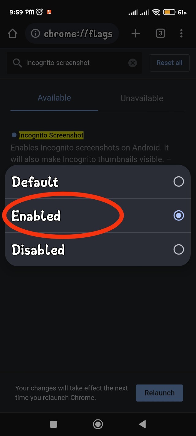এরপর নিচের দেখানো Relaunch এ ক্লিক করুন।