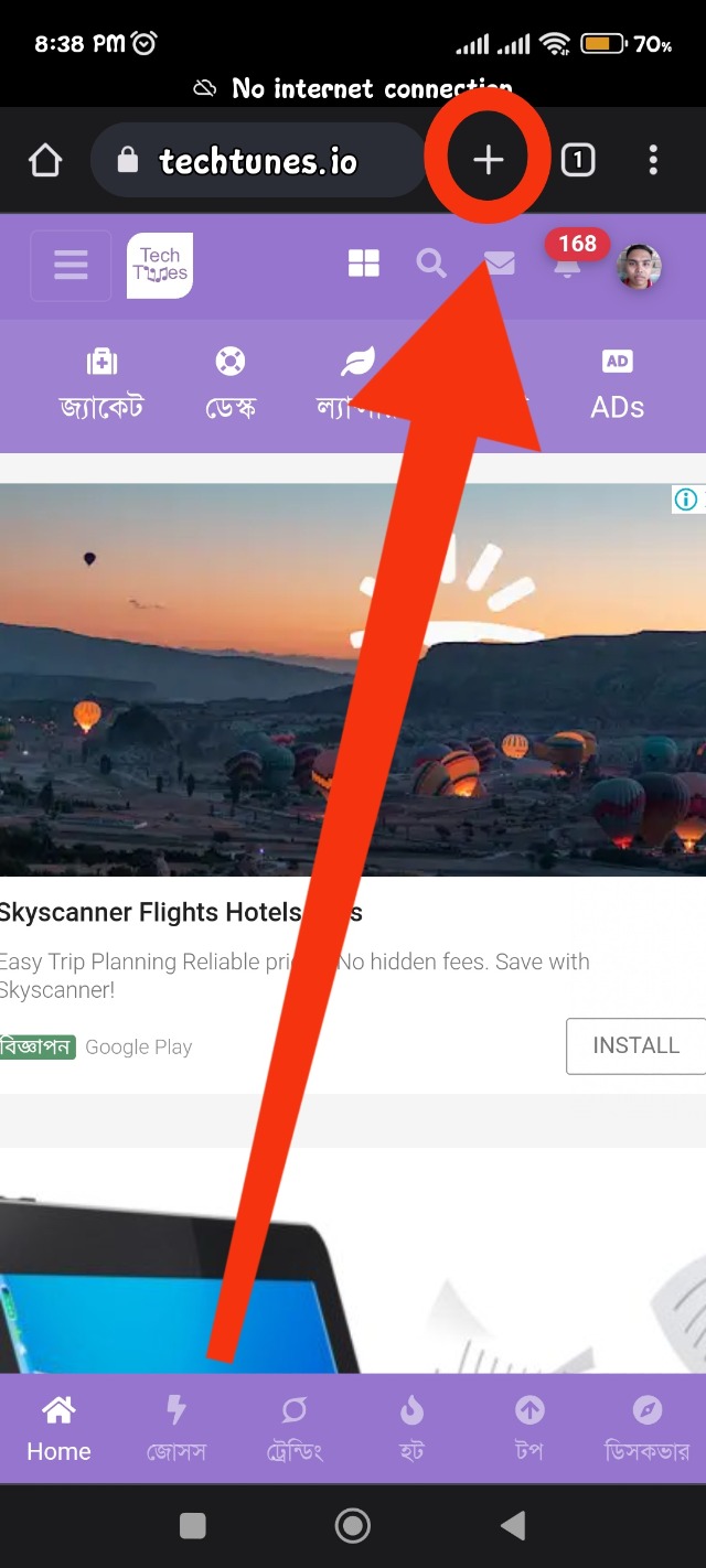 এই ট্রিকস টি ব্যবহার করার জন্যে প্রথমে আপনাকে গুগল ক্রম ওপেন করতে হবে। এরপর যেকোনো একটি ওয়েসাইট ওপেন করতে হবে। এরপর উপরের দেখানো (+) প্লাস আইকন এ ক্লিক করে নতুন একটি ট্যাব ওপেন করে নিবেন।