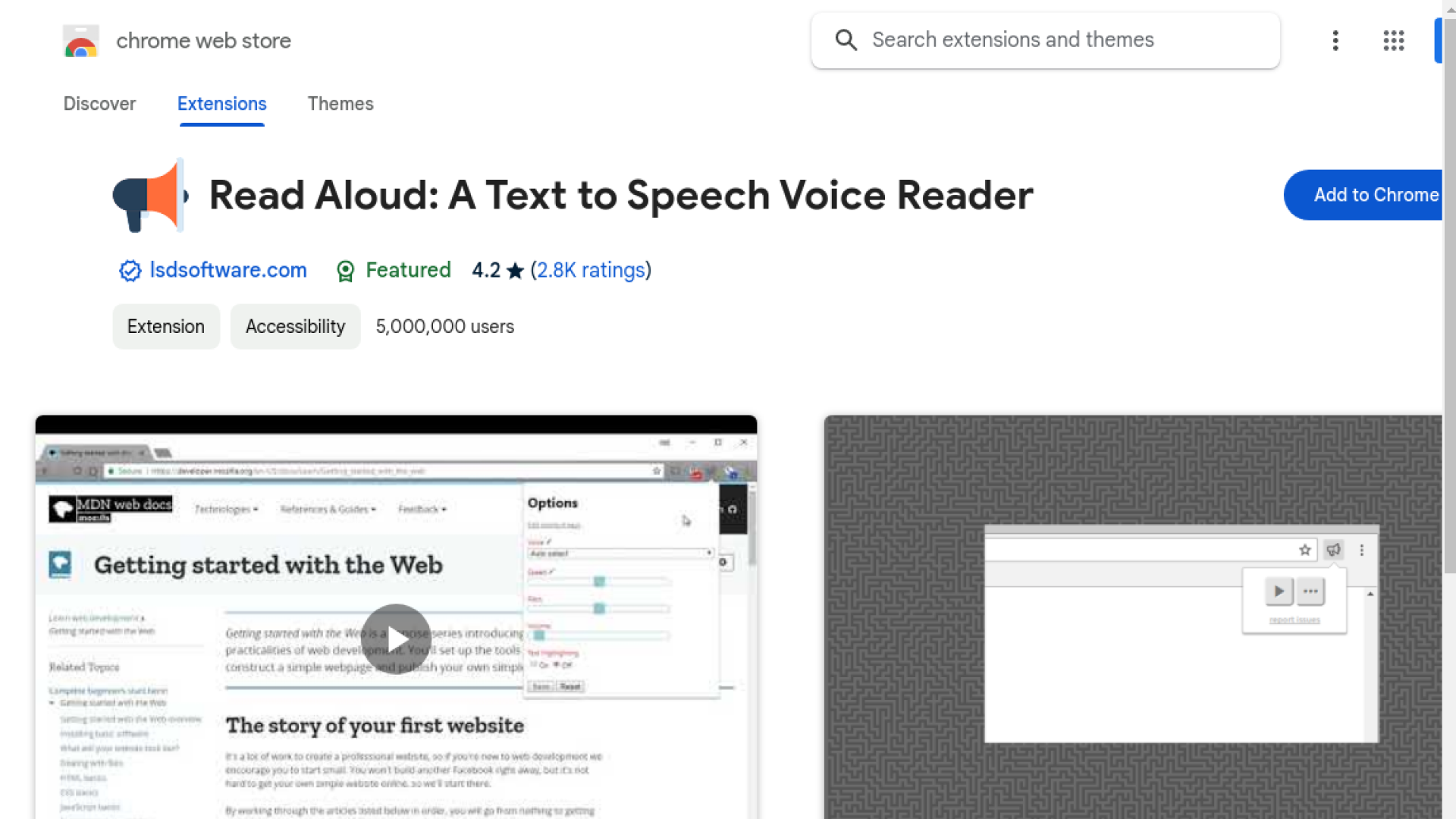 Read Aloud একটি ক্রোম ব্রাউজিং এক্সটেনশন এটি যেকোনো লেখা ওয়েব পেজ পড়ার জন্য ব্যবহার করা হয়। এই এক্সটেনশনটি ব্যবহার এর ফলে এটি স্বয়ংক্রিয়ভাবে যেকোনো ওয়েবসাইটের পেজের লেখাকে পড়ে বা উচ্চস্বরে শোনাতে পারে। এই এক্সটেনশনটি ব্যবহার করার জন্য আপনার ক্রোম ব্রাউজারে এই এক্সটেনশন টি ইনস্টল করতে হবে। প্রতিটি ওয়েব পেজের উপরে একটি ভয়েজ আইকন থাকবে, যার মাধ্যমে আপনি ক্লিক করলে এক্সটেনশন টি আপনাকে ওয়েব পেজটির লেখাগুলো পড়ে শোনাবে।