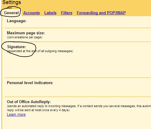 এবার General এ ক্লিক করলে Signature নামে একটা অপশন পাবেন।