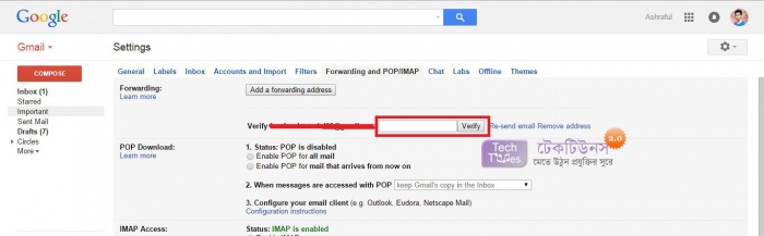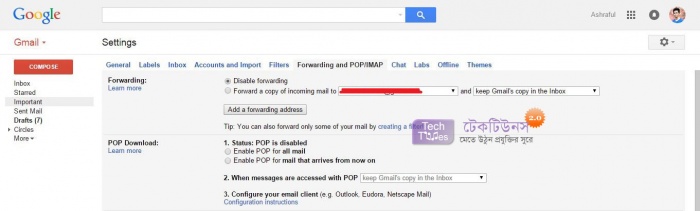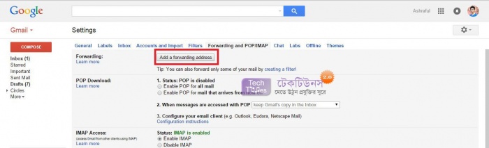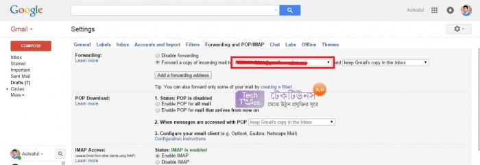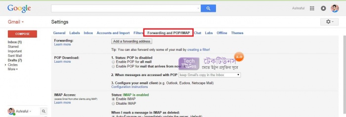 এখন আপনাকে যা করতে হবে তা হল দেখুন Forwarding and POP/IMAP আছে সেখান এ ক্লিক করুন। নিচের মতো।