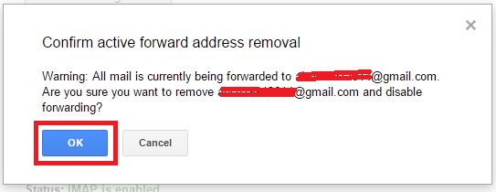 এবার ok তে ক্লিক করলে আপনার ঐ ইমেইলটি আর ইমেইল Forwarding হবে না Remove হয়ে গেল।