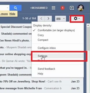 এবার ইনবক্স এ ক্লিক করুন এবং ডান পাশে Settings আইকোনে ক্লিক করুন নিচে Settings এ ক্লিক করুন। নিচের মতো