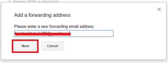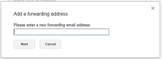 এখন Forwarding and POP/IMAP ক্লিক করার পর নিচে দেখুন Add forwarding address নামে একটি মেনু আছে ক্লিক করুন। ক্লিক করলে নিচের মতো একটি উনডো অপেন হবে আসবে।