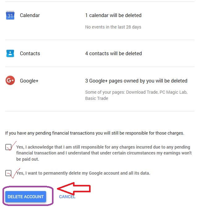 ৩। টিউনের আলোচনা অনুযায়ী জিমেইল একাউন্ট ডিলেট হবার সাথে আপনার জিমেইল একাউন্টের অন্তগর্ত অন্যান্য একাউন্ট যেমন: ব্লগার, গুগল ড্রাইভ, ইউটিউব, গুগল+ ডিলেট হয়ে যাবে।