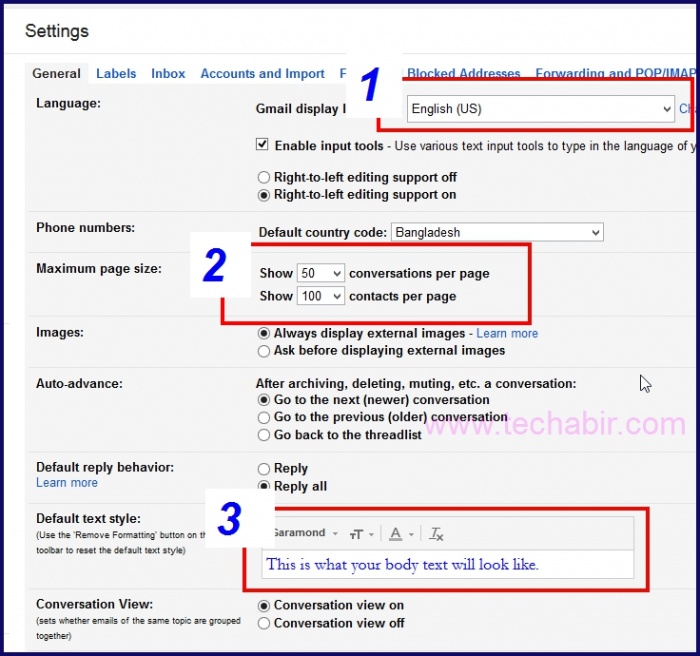 ২ নং বক্সে কতগুলো মেইল প্রথম পেজে রাখতে চান তা সিলেক্ট করতে পারবেন।