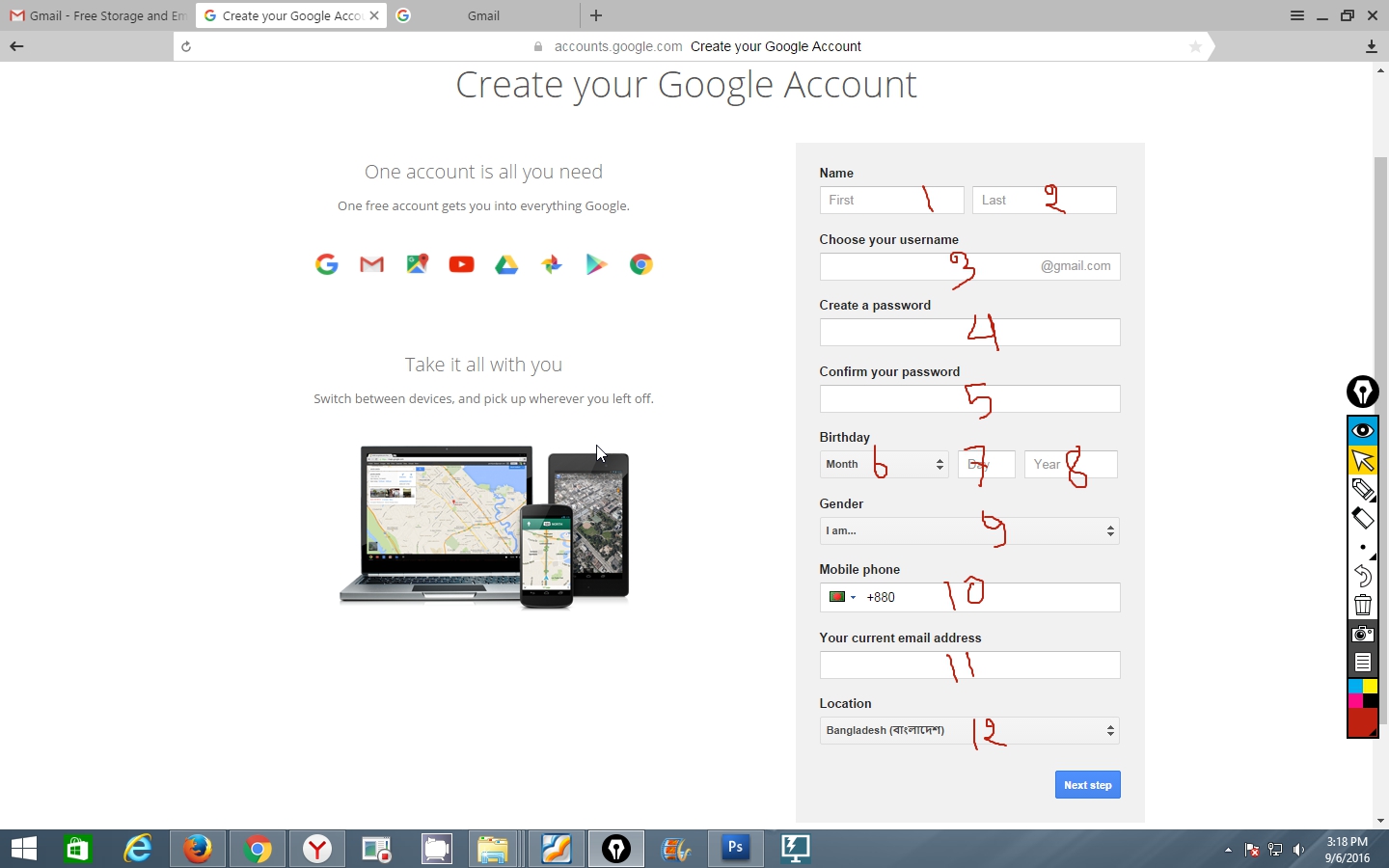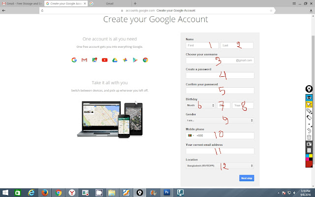দুই অবস্থাতেই জিমেইল আপনাকে তাদের সাইন আপ পেজ এ নিয়ে যাবে। এই ফর্মটি সঠিক তথ্য দিয়ে পুরন করুন--
