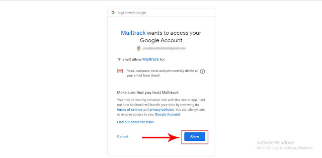 এখন আপনার মেইলটিতে ক্লিক করার পর Google আপনার কাছ থেকে আনুমতি চাইবে। তাই এখানে নিচের চিত্রে নির্দেশিত Allow বাটনটিতে ক্লিক করুন।