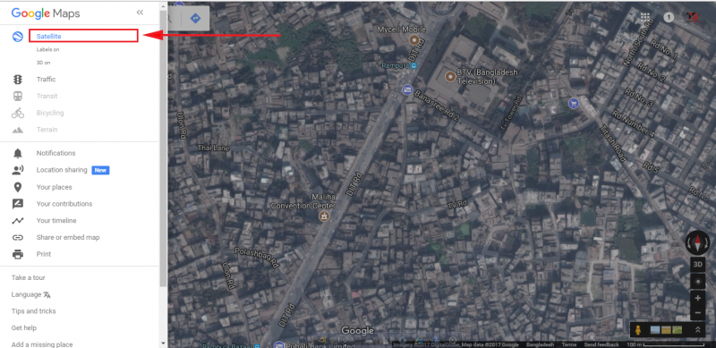 আমার ম্যাপে স্যাটেলাইট ইমেজ অন করা। আপনি যেকোনো ম্যাপে করতে পারবেন। তবে আমি স্যাটেলাইট ইমেজ ভাল লাগে তাই আমি এটি ব্যবহার করছি। স্যাটেলাইট ইমেজ অন অফ নিচের অপশন থেকে করতে পারবেন।