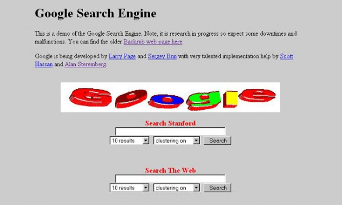 ১৯৯৮ সালে প্রথম লেরি পেইজ এবং সারজি বিন গুগল ডুডল অবমুক্ত করে। নাভান্ডা মরুভুমিতে গুগল ক্রিউ পাঠানো উপলক্ষে, সেই উপলক্ষে এই ডুডল ছাড়া হয়।