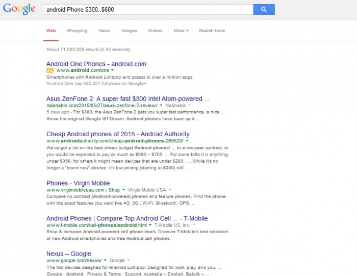 আপনি গুগলে নাম্বার রেঞ্জ দিয়েও সার্চ করতে পারেন। যেমন ধরুন আপনি একটা এন্ড্রয়েড ফোন কিনবেন $300 থেকে $600 ভেতর। তাহলে আপনি সেটা সার্চ রতে পারেন নিচের ফরম্যাটে :