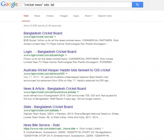 উপরের ফরম্যাটে সার্চ বক্সে টাইপ করে আপনি যেকোন সাইটের আন্ডারে সার্চ করতে পারেন। আর আপনি কোন টপ লেভেল ডোমেইনের ভেতর সার্চ করতে পারেন। যেমন আপনি চাইছেন .org, .gov .in .bd প্রভৃতি ডোমেইনের ভেতর সার্চ দিতে। তাহলে আপনার সার্চিং ফরম্যাট হবে :