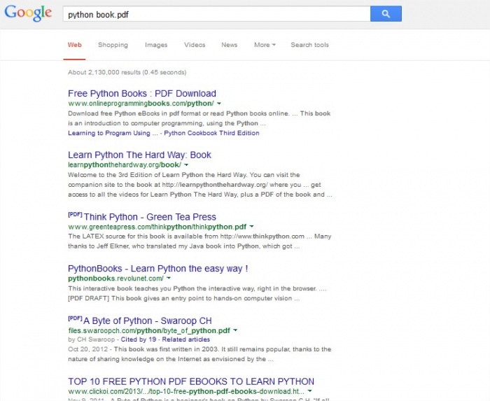 আপনি ইচ্ছা করলে যেকোন নির্দিষ্ট ফাইল টাইপ সার্চ করতে পারেন। এজন্য জাস্ট আপনার সার্চ কীওয়ার্ডে শেষে ফাইল টাইপ টা একটা ডট দিয়ে উল্লেখ করে দিন। যেমন ধরুন আপনি একটা প্রোগ্রামিং এর উপর পিডিএফ বই খোজ করছেন। সেক্ষেত্রে আপনার কীওয়ার্ড হবে :