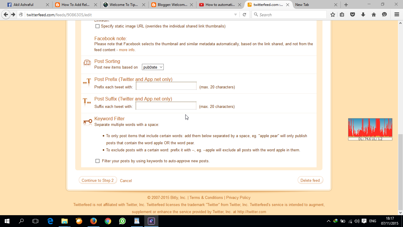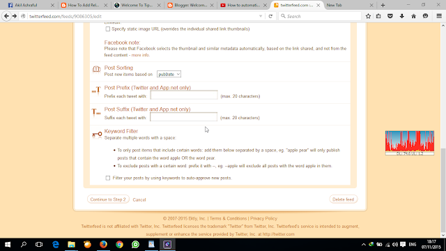 সবাই কেমন আছেন। এটা টেকটিউনস এ আমার ৯ম টিউন। আশা করি আমার এই টিউনটি আপনাদের সবার কাছে ভাল লাগবে। আজকে আমি আপনাদেরকে শিখাবো কিভাবে আপনার ব্লগ টিউন গুলি আপনার ফেসবুক পেজ, আপনার ফেসবুকে একাউন্ট এবং আপনার টুইটার একাউন্টে অটোমেটিকেলি শেয়ার করবেন। তাহলে আর বেশি দেড়ি না করে আপনাদেরকে শিখিয়ে দিচ্ছি।