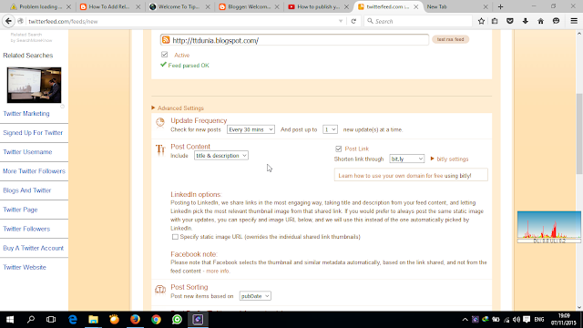 এবার Feed Name এবং Blog Url দিন। এরপর নিচে দেখুন Advanced Settings আছে। ওখানে ক্লিক করুন।