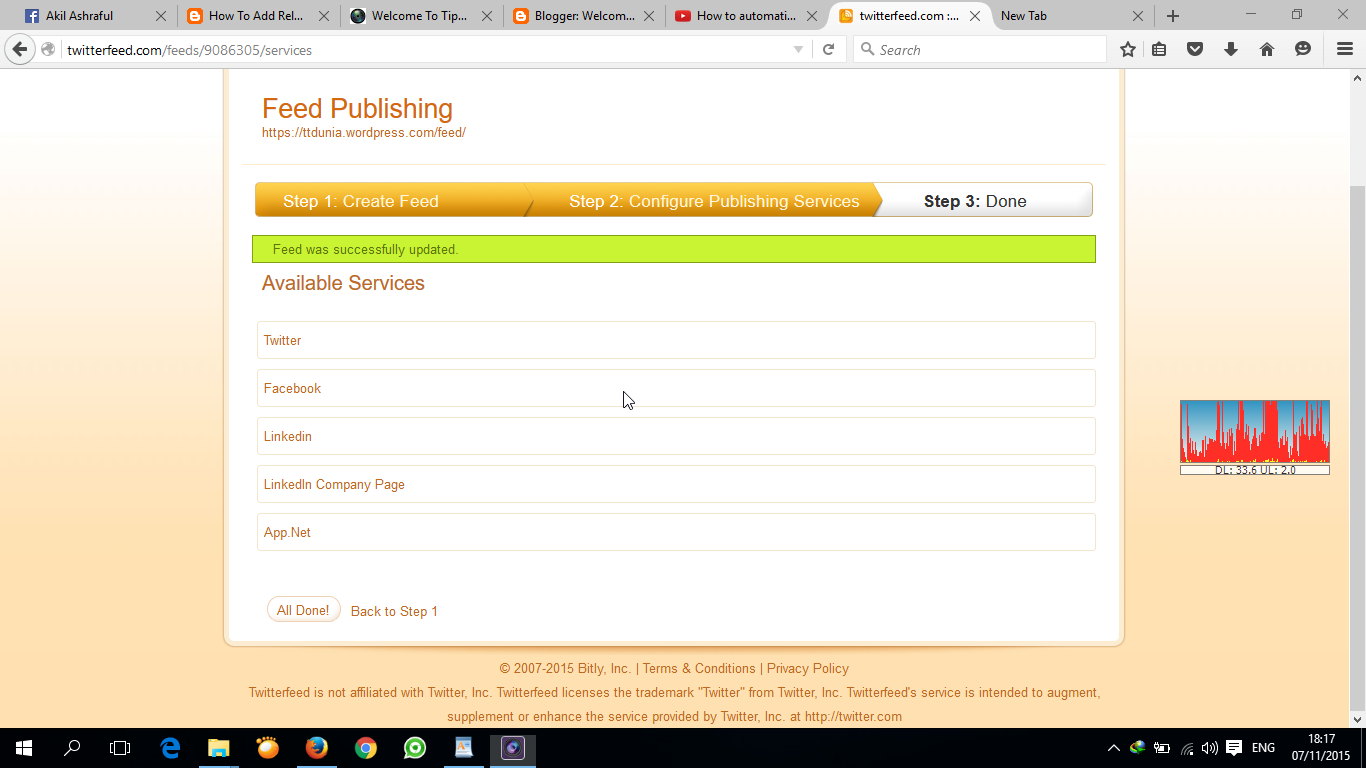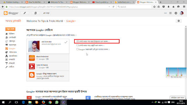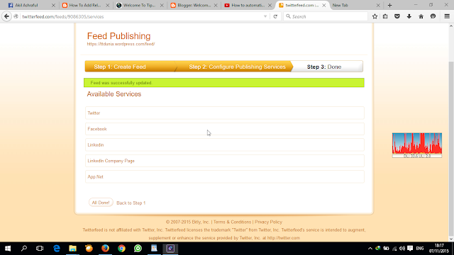 এখন আপনি যখনই ব্লগে কোন টিউন করবেন। সেটি কিছুক্ষনের মধ্যেই আপনার ফেসবুকে এবং টুইটারে শেয়ার করা হবে।