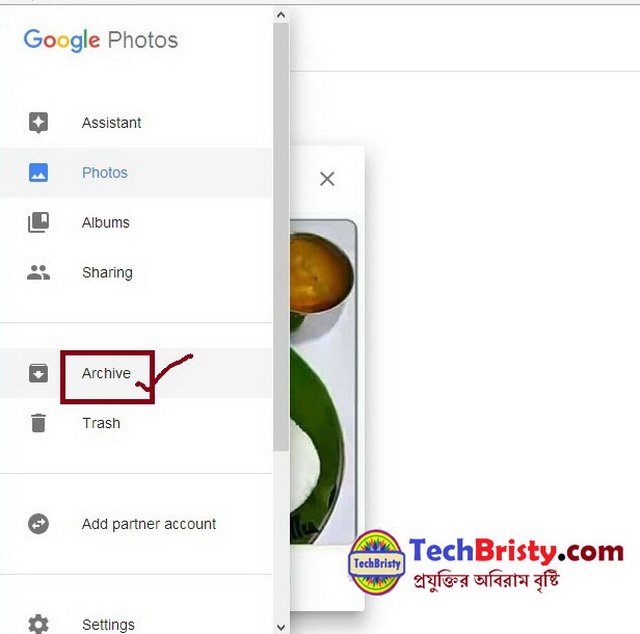 নির্বাচন করা হয়ে গেলে এন্ড্রয়েড মোবাইলের;গুগল ফটোজ’ অ্যাপের স্ক্রীনের উপরের ডান কোনায় তিনটি ডট চিহ্ণিত অপশনটিতে অথবা কম্পিউটারের বাম কোনায় উপরে ক্লিক করলে আর্কাইভ নামের অপশনটি দেখতে পাবেন।