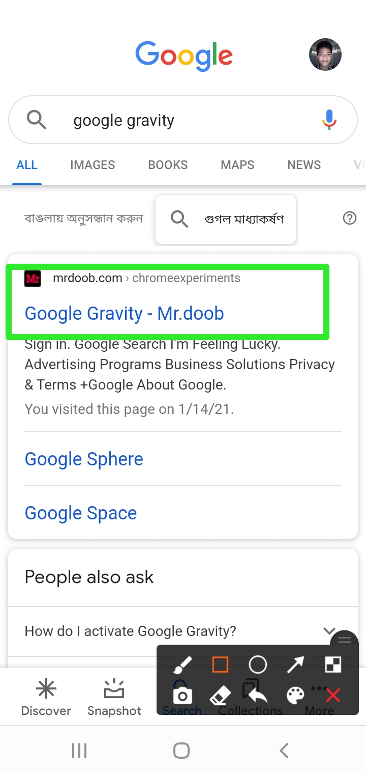 লিখলেই যে পেইজটি দেখাবে সেখানে প্রথম লিংক এ ট্যাপ করতে হবে। এরপর একটি অবাক কাণ্ড ঘটবে।