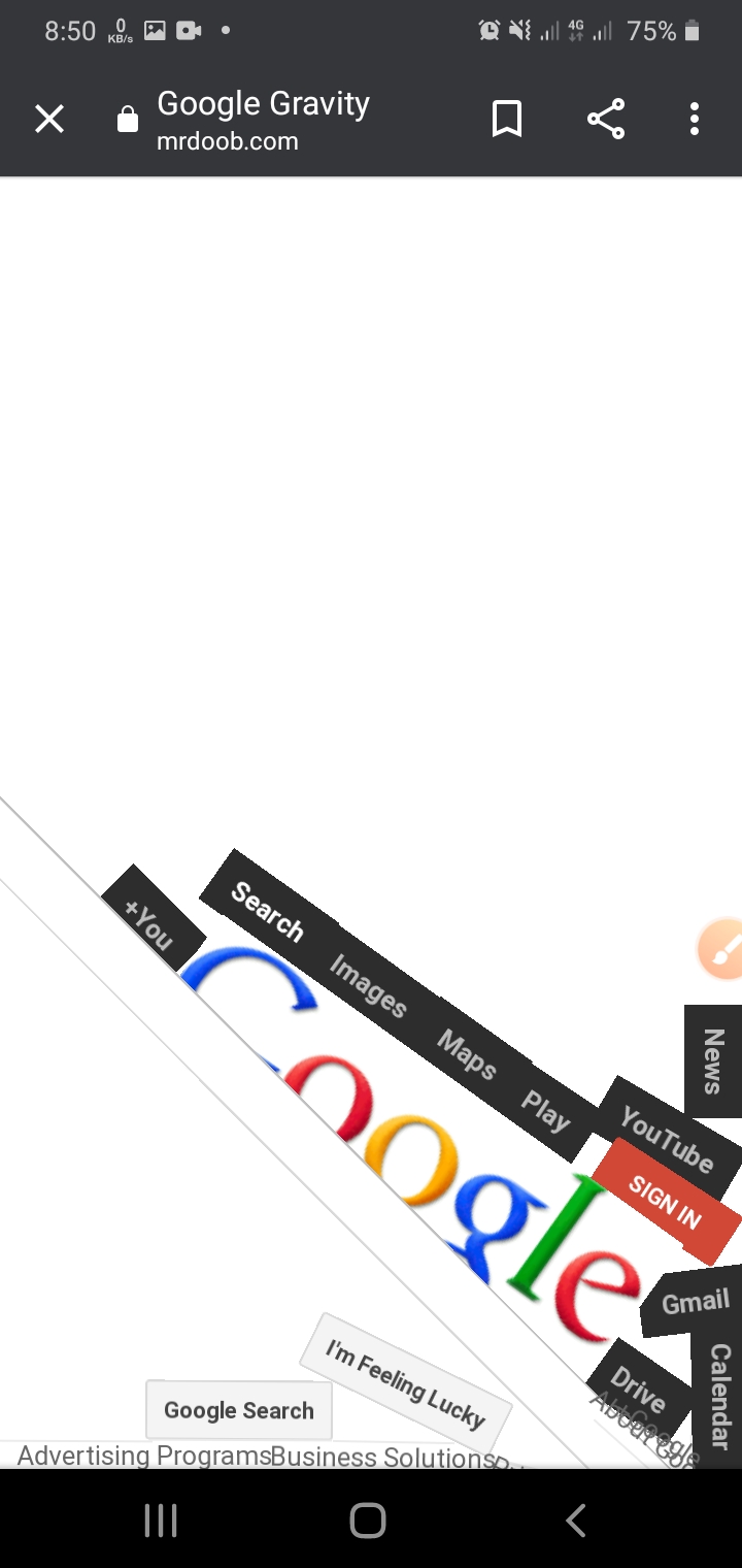 এরপর এটি সার্চ করলে দেখা যাবে গুগল উল্টে যাচ্ছে। অর্থাৎ আপনি যে পেইজটি দেখবেন সেটি অটোমেটিক রোটেড করবে। ঠিক নিচের ছবির মতো।