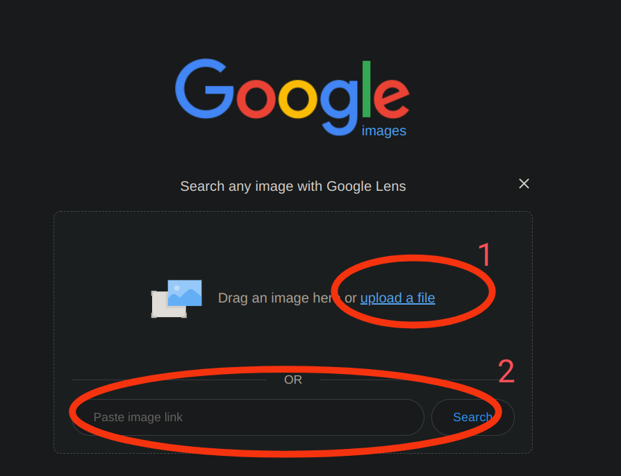নিচের দেখানো ১ নাম্বারে আপনার সেই ছবিটি সার্চ এর জন্যে আপলোড করতে পারবেন। এবং দ্বিতীয় অপশন এ সেই ছবি কোনো লিঙ্ক এর মাধ্যমে দিতে পারবেন।
