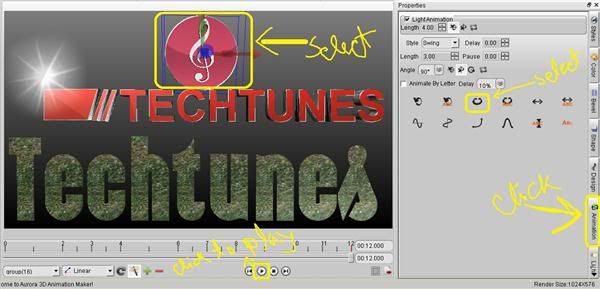 ঙ) এবার চিত্রের মত সিলেক্টকৃত শেফটিকে ইফেক্ট দেয়ার জন্য বামপাশে ‘Animation’ ট্যাবটি ক্লিক করে যেকোন বামপাশে হলুদ বৃত্তের মত সিলেক্ট করুন এবং নিচের দিকে প্লে বাটনে ক্লিক করুন ।