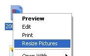 ক) যে ছবি রিসাইজ করতে চাচ্ছেন তার উপর মাউসে রাইট বাটন ক্লিক করে Resize Pictures এ ক্লি করেন ।