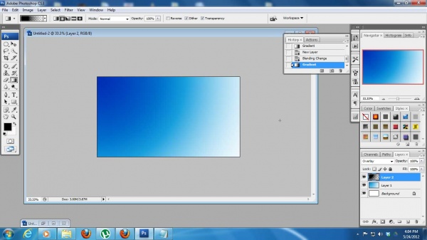 Background এর উপর নতুন একটি লেয়ার খুলে তাতে আপনার পছন্দমত Gradient ব্যবহার করুন। এখন নতুন একটি লেয়ার নিয়ে তাতে কালো-ট্রান্সপারেন্ট Gradient প্রয়োগ করুন।