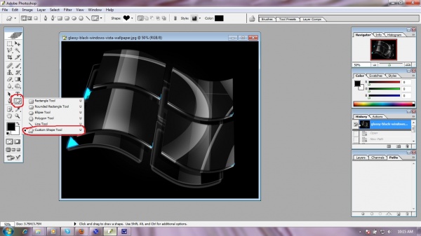 ১. ১ম Custom Shape Tools এ ক্লিক করুন।এরপর Custom Shape Tools ক্লিক করুন।নিচের ছবি দেখেন।