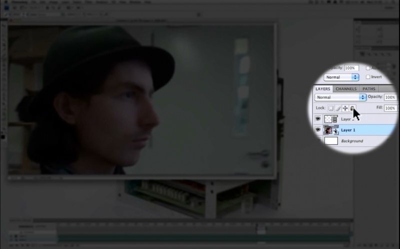 ৫. এই অংশে আমরা Brush নিয়ে কাজ করব ইফেক্টটি তৈরী করার জন্য আমরা বিশেষ একটি Brush তৈরী করব। Brush তৈরীর জন্য আমরা প্রথমে টুলবার থেকে Brush টুলস টি সিলেক্ট করব। Brush এর কাজ শুরু করার আগে আমাদের কে ভিডিও লেয়ারটিকে লক করতে হবে, এই কাজটি করব কারণ Blank video Layer টিতে কাজ করার সময় যেন ভিডিও লেয়ারটিতে কোন প্রভাব না পরে তাই।