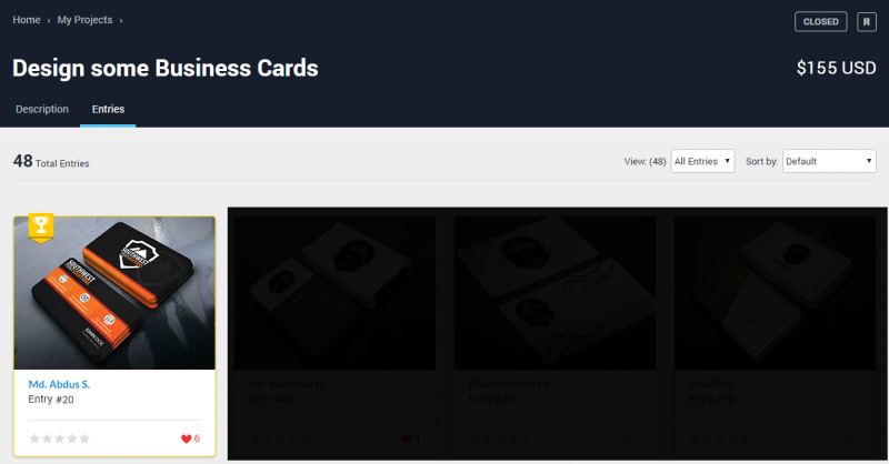 ডিভিডি তে শুধু ফটোশপের উপর ৭০ টা ভিডিও ছিল। এবং 99designs, Fiverr, Freelancer, Graphicriver, Upwork এর উপর অনেক ভিডিও ছিল। আমি সফটওয়্যার নিয়ে চিন্তা করছিলাম কিন্তু তাদের ডিভিডির মধ্যেই সফটওয়্যার, মোকাআপ, আইকন, ফন্ট এবং কিভাবে সফটওয়্যার ইন্সটল করতে হয় সেটা নিয়েও ভিডিও ছিল। এরপর আমি তাদেরকে কল করে জেনে নিলাম কিভাবে শুরু করব। তারা আমাকে খুব সুন্দরভাবে বলল, আমি সে ভাবেই শুরু করলাম। ২০ দিনে ৫৭ টা ভিডিও দেখে এবং প্রাকটিস করে শেষ করেছি। যখন যখন আমি সমস্যাতে পরেছি তখন তাদের ফেসবুক গ্রুপে টিউন করেছি এবং তাদেরকে কল করেও সমাধান করে নিয়েছি। আসলে গাইডলাইন ছাড়া যে এসব শেখা যায়না ততদিনে বুঝতে পেরেছি। ছোট ছোট সমস্যায় পরলে মাথা ঠিক থাকে না। তখন উনাদেরকে কল করে জেনে নিলে বিষয়টা পানির মত পরিষ্কার হয়ে যায়। একটা কথা বলতে ভুলে গিয়েছি। এই ডিভিডি টা বানিয়েছেন মামুনুর রশিদ ভাই। উনি এত সুন্দর এবং সহজ ভাবে বুঝিয়েছেন যে এটা দেখে যে কেউ শিখতে পারবেন। ৫৭ টা ভিডিও দেখে শেখার পর প্রজেক্টের কাজ শেখা শুরু করি। প্রথমে তাদেরকে কল করে জেনে নেই যে আমি কোন প্রজেক্ট প্রথমে শিখব। তারা বলে বিজনেস কার্ড বানানো সহজ। আর নতুনদের প্রথমে এটা শিখলে অনেক কিছু জানা হবে এবং শুধুমাত্র এটা শিখেই অনলাইনের কাজ করা যাবে। তাই আমি বিজনেস কার্ডের ভিডিও দিয়ে শুরু করি। সেখানে খুব সন্দর ভাবে বুঝানো আছে যে কিভাবে কি করতে হবে। কিভাবে একটা সুন্দর ডিজাইন করা যাবে, কিভাবে নতুন নতুন আইডিয়া পাওয়া যাবে, কিভাবে ডিজাইন কোয়ালিটি অনেক সুন্দর করা যাবে। এসব দেখে নিজে নিজে ট্রাই করি। শুধুমাত্র বিজনেস কার্ড বানানো শিখেছি ১০ দিন প্রাকটিস করে। তারপর যাদের কাছ থেকে ডিভিডি কিনেছি তাদেরকে কল করে জেনে নিলাম আমার এখন কি করা উচিৎ। তারা বলল আমার ডিজাইন কোয়ালিটি আরও সুন্দর করে Freelancer.com এ কন্টেস্টে জইন করার জন্য। আমি তাদের কথামত তাই করলাম। ৭ দিন কাজ করে আমি একটা ১৫৫ ডলারের কন্টেস্ট উইন করেছিলাম। নিচে সেটার একটা ছবি দিলাম।