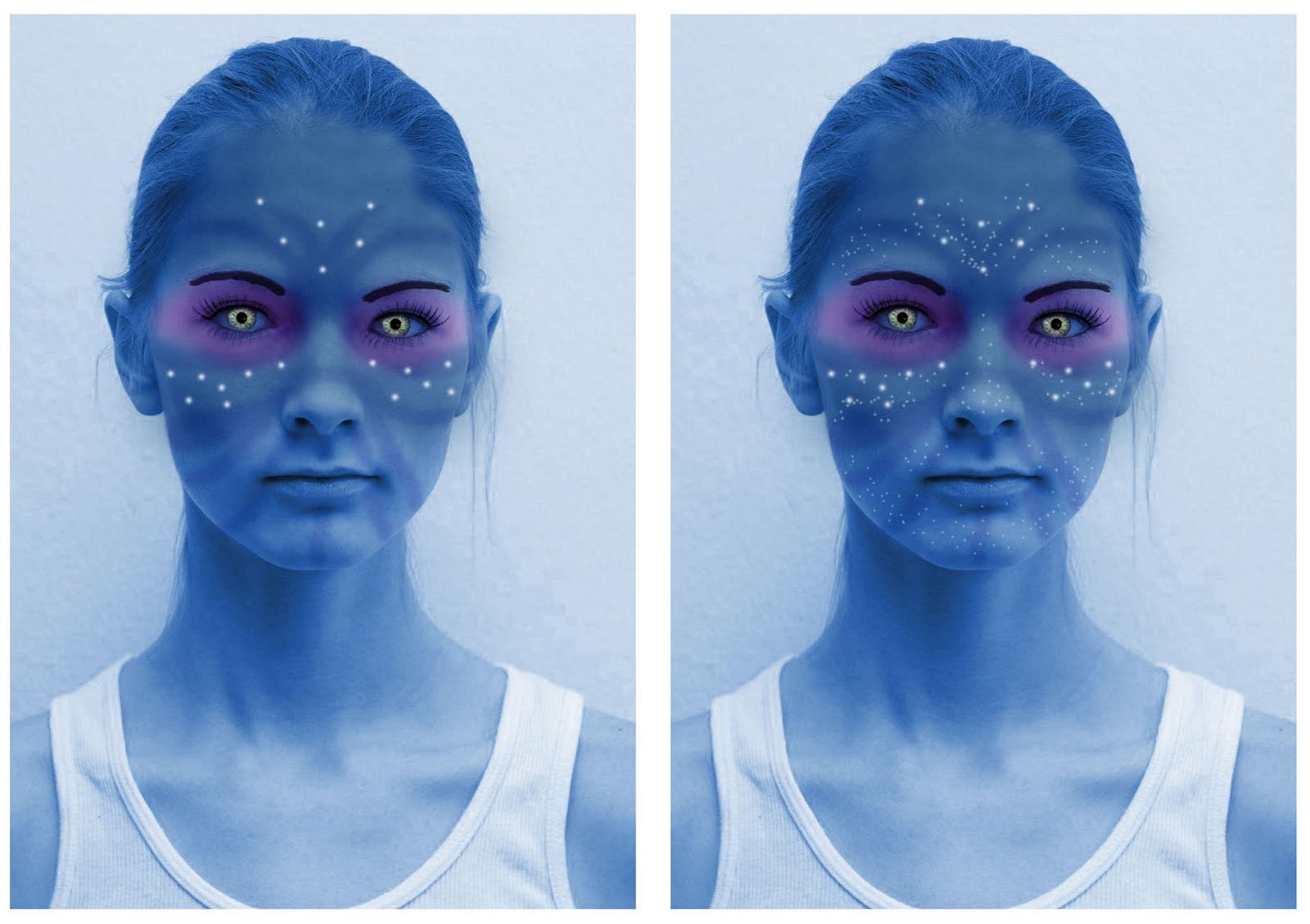 এই কালার #565acd কোডটি নির্বাচন করুন এবং ok করুন। মুখের উপর লাইন আকৃতি করে ব্রাশ করুন(ছবিটি ফলো করুন). এবং লেয়ার মুড Multiply এবং opacity 25%. করুন