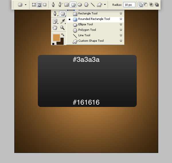 নতুন লেয়ার তৈরি করুন (Ctrl+Shift+N). Rounded Rectangle Tool (U) with 10px radiusব্যবহার করে একটি রেক্টেঙ্গেল
