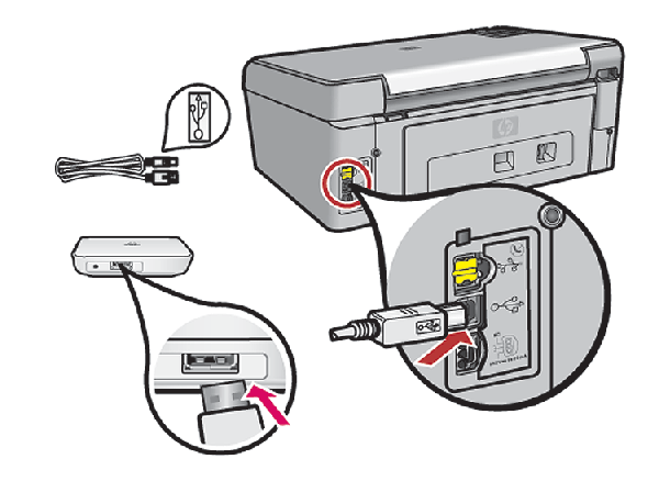 যখন সিস্টেমের আলাদা কোন পেরিফেরাল,যেমন-প্রিন্টার কেনা হয় তখন এর সাথে প্রদত্ত নির্দেশিকা থাকে।যার সাহায্যে খুব সহজেই প্রিন্টার সেটআপ দেয়া যায়।কম্পিউটারের সিস্টেম ইউনিট থেকে প্রিন্টারে ডেটা পাঠানোর জন্য সাধারণত ডেটা ক্যাবল এবং প্রিন্টার কার্যকর করতে পাওয়ার ক্যাবলের সাহায্যে বৈদ্যুতিক সংযোগ প্রতিষ্ঠা করা হয়।অনেক প্রিন্টারে প্যারালাল পোর্ট ব্যবহার করা হয়।যেটি দিয়ে একই সময়ে পাশাপাশি ডেটা স্থানান্তর করা হয়।মনিটরের ক্যাবল ও পোর্টে যেমন পিন আছে এখানেও তেমনি এবং একইভাবে লাগানো যায়।তবে আধুনিক প্রায় সকল কম্পিউটারের প্রিন্টারে ইউএসবি ইন্টারফেস দেখা যায়।আবার অনেক আধুনিক প্রিন্টারে ডেটা ক্যাবলের পাশাপাশি/পরিবর্তে ওয়্যারলেস প্রযুক্তিও ব্যবহার করা হয়।নেটওয়ার্ক প্রিন্টারে পৃথক কোন ডেটা ক্যাবলের প্রয়োজন হয় না।নেটওয়ার্ক মিডিয়ার মাধ্যমেই ডেটা চলাচল করতে পারে।
