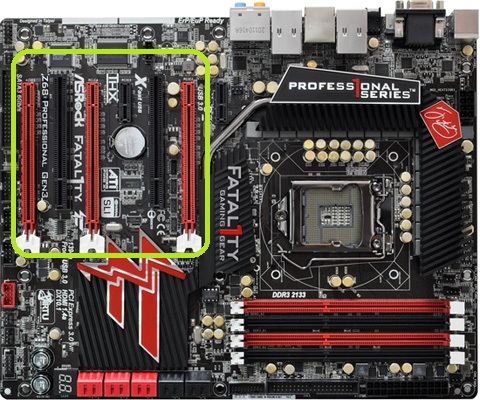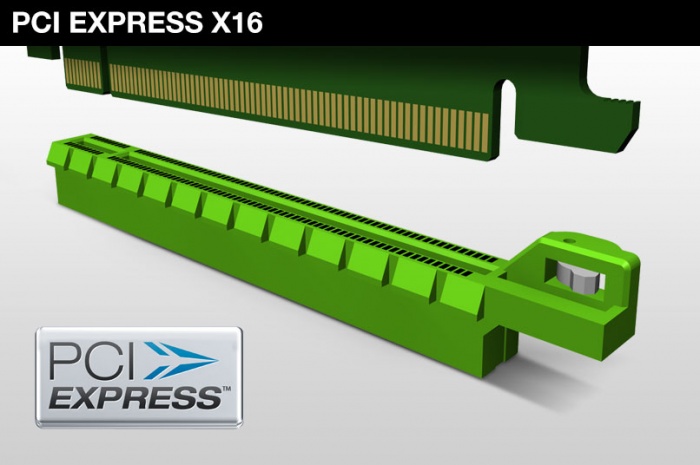 মাদারবোর্ডের যে স্লটে গ্রাফিক্স কার্ড কানেক্টেড থাকে সেটিকে বলা হয় পিসিআই এক্সপ্রেস, স্লট টি দেখতে নিচের মত। বিভিন্য ভার্সনের পিসিআই এক্সপ্রেস স্লট আছে যেমন PCIe 1/1.1/2/3 ইত্যাদি।