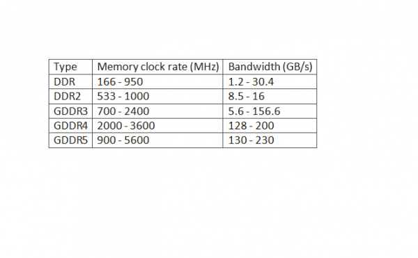 GDDR4 কার্ড খুব রেয়ার, ATI X1950 কার্ডটি GDDR4 er। বর্তমানে পাওয়া যায়না, GDDR5 গ্রাফিক্স কার্ড অবশ্যই GDDR3 কার্ড এর চেয়ে ভালো। এই মেমরি টাইপের সাথে, মেমরী ক্লক স্পীড লিমিট এবং ব্যান্ডউডথ লিমিট এর সম্পর্ক আছে। পার্ফরমেন্স এর ক্ষেত্রে GDDR5>GDDR4>GDDR3>DDR2>DDR।
