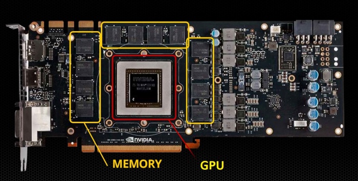 এবার আসি গ্রাফিক্স কার্ডের বেলায়। গ্রাফিক্স কার্ড যেহেতু কিছু স্প্যাসসিফিক অ্যাপ্লিকেশান এর জন্য ডিজাইন করা হয় তাই এর কোর সংখ্যা সিপিইউ এর তুলনায় অনেক অনেক বেশি এবং সাইজেও অনেক ছোট যাতে সবগুলা কোর ছোট সিলিকন চিপের মাঝে সঠিক ভাবে ফিট হয়।