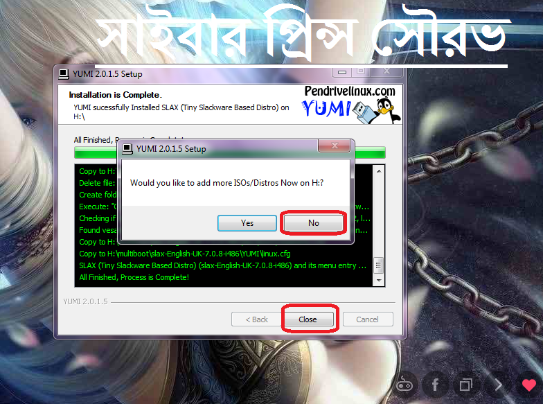 এবং Finish না আসা পর্যন্ত আমার বাকী ফালতু কথা শুনুন। এরপর আপনার কম্পিউটার_রি-স্টার্ট করুন। রি-স্টার্ট করার পুর্বে পেন-ড্রাইভ অথবা মেমোরী কার্ডটি ইউএসবিতে কানেক্ট করে নিন। এরপর একেক_কোম্পানীর_কম্পিউটারে_Boot_Menu_সিলেক্ট করার জন্য ভিন্ন ধরনের Key থাকতে পারে। তবে আমার কম্পিউটারে বুট মেনু F10 । আপনার কম্পিউটারে F8,F12 বা অন্য কিছু হতে পারে।
