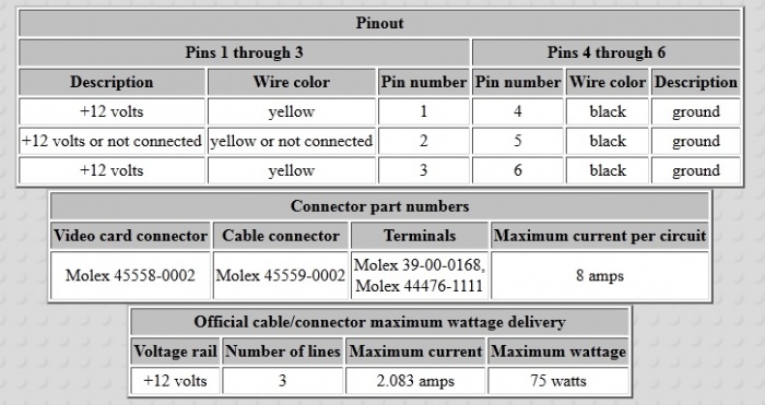 এই ক্যাবল গুলি সাধারনত গ্রাফিক্স কার্ডকে পাওয়ার সাপ্লাই করে, একটি ৬ পিন ক্যাবল গ্রাফিক্স কার্ড কে ম্যাক্সিমাম ৭৫ ওয়াট পাওয়ার সাপ্লাই করে।