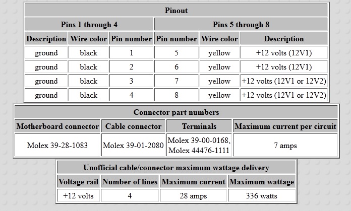 আগেই জেনেছি পুরানো মাদারবোর্ড গুলা ৪ পিনের সকেট ইউজ করে আর নতুন গুলা করে ৮ পিনের। এই ধরনের কানেক্টর দুই ধরনের মাদারবোর্ডেই ইউজ করা যাবে, এই ক্যাবল দিয়ে সর্বোচ্চ ৩৩৬ ওয়াট পাওয়ারের সিপিইউ চালানো যাবে যদিও বর্তমানের কোন সিপিইউ তে এত ওয়াট লাগে না।
