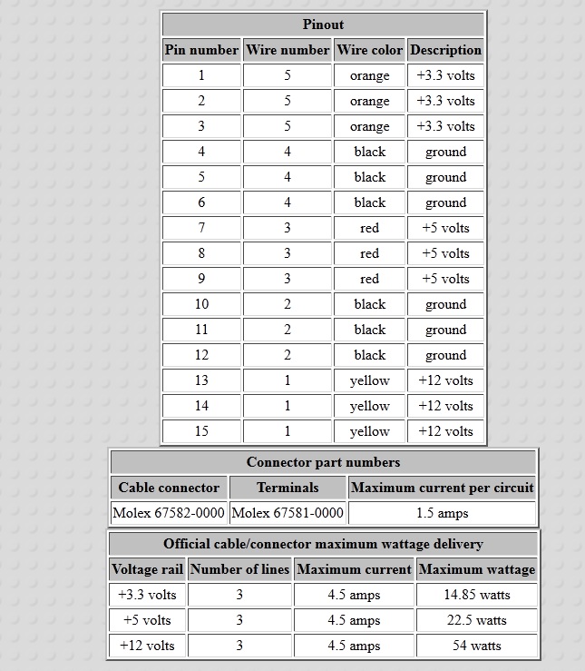 মাদারবোর্ডের +3.3V এবং +5V রেইলে অতিরিক্ত অ্যাম্পিয়ার সরবরাহ করার জন্য এই ক্যাবলটি ইউজ হত একসময়। পুরানো মডেলের ডুয়ালকোর এএমডি মাদারবোর্ডে এগুলো পাওয়া যাবে।