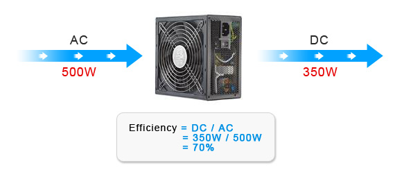 একটি পাওয়ার সাপ্লাই ইউনিট কি পরিমান পাওয়ার AC গ্রিড/ওয়াল সকেট থেকে টানে আর তার কতটুকু পরিমান DC তে কনভার্ট করে তা বিভিন্য কম্পনেন্টকে ডিস্ট্রিবিউশন করতে পারে সেটা সেই পাওয়ার সাপ্লাই ইউনিটের Efficiency দিয়ে বুঝা যায়। সহজ কথায় বলতে গেলে পাওয়ার সাপ্লাই ইউনিট টি যে পরিমান পাওয়ার পিসি কম্পোনেন্ট কে সাপ্লাই দিচ্ছে এবং যে পরিমান পাওয়ার ওয়াল সকেট থেকে কনসিউম করছে তার অনুপাত কেই PSU Efficiency বলে।