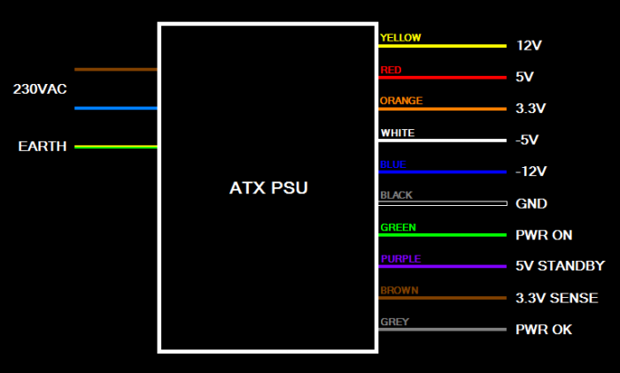 পাওয়ার কানেক্টর চিনার আগে আমাদের পাওয়ার সাপ্লাই ইউনিটের তার গুলো সম্পর্কে হালকা পাতলা ধারনা থাকতে হবে, কোন রঙের তার কোন রেইলের সেটা নিচের ছবি থেকে হালকা পাতলা আইডিয়া পাবেন