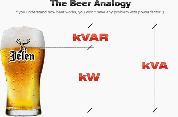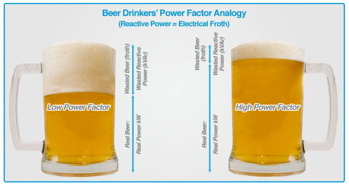 একটি ড্রিঙ্কসের বোতল প্রথমে খুললে বোতল থেকে কিছু ড্রিংকস বুদবুদ করে ফেনা হয়ে বেরিয়ে যায়, এই বুদবুদ আকারে উড়ে যাওয়া ড্রিংকসটুকুর অস্তিত্ত্ব আছে, কিন্তু আমাদের কোনো কাজে আসে না। কিন্তু বাকি ড্রিংকসটুকু যেটা থাকে, সেটা আমরা পান করতে পারি। এটা আমাদের কাজে আসে। ড্রিঙ্কসের এই ফেনার মতো বুদবুদ অংশকে রিয়েকটিভ পাওয়ার, আর মুল অংশকে রিয়েল পাওয়ারের সাথে তুলনা করলে রিয়েল পাওয়ার আর রিয়েকটিভ পাওয়ার এর অনুমান পাওয়া যায়। অর্থাত যে পাওয়ারটুকু আমাদের কাজে আসে, সেই পাওয়ারটুকু রিয়েল পাওয়ার, আর যেই পাওয়ারটুকুর অস্তিত্ত্ব আছে, বাট আমাদের কোনো কাজে আসে না, সেটা রিয়েকটিভ পাওয়ার। কিন্তু ক্যালকুলেশনের সময় দুটুই হিসেবে আনতে হয়।